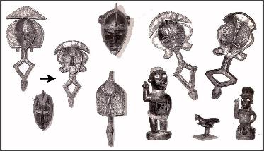| Reliquaries seen by P.S. de Brazza "Voyages dans l'Quest african" Le Tour Du Monde, Paris, 1887 |