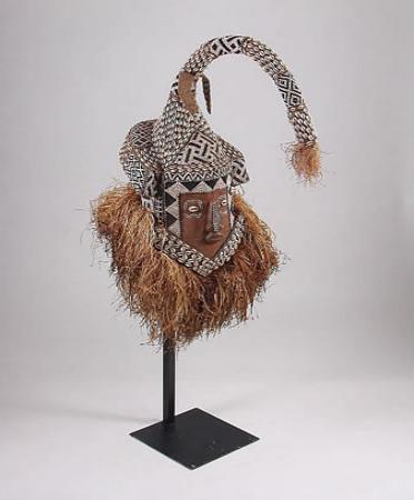 | Mask (mukyeem), 19th–20th century Democratic Republic of the Congo, Kuba peoples Wood, beads, fiber, hair, cowrie shells, and cloth; H. 18 in. (45.7 cm) Private collection Source - http://www.metmuseum.org/special/Genesis/10.L.htm |