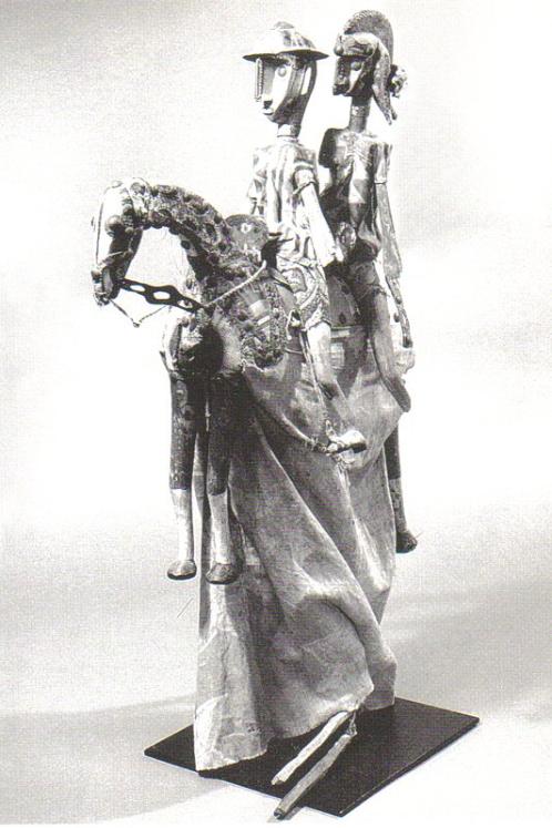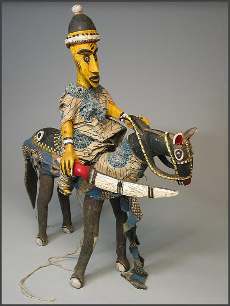 | Bamana maani of Sotigi, the horseman. This version represents a colonial officer on horseback 27" long x 34" tall Arms are operated by strings |