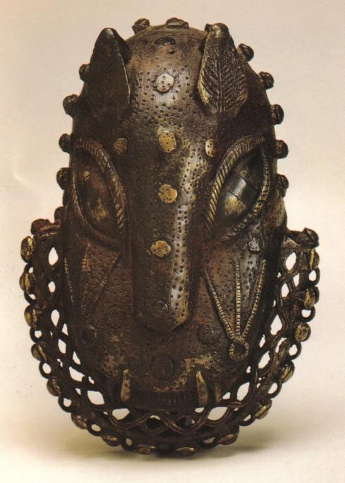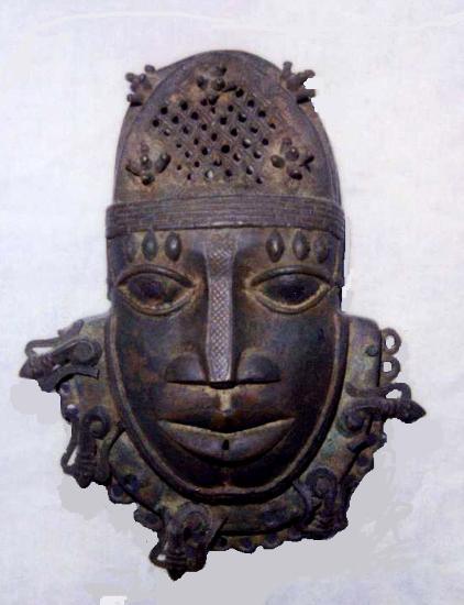 | Benin, Queen Mother (Iyoba) c1550 Hip Mask 9" ivory, iron, copper |