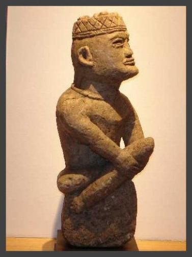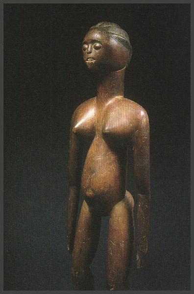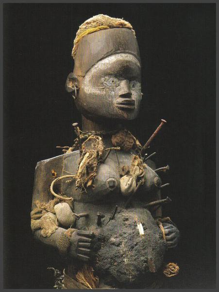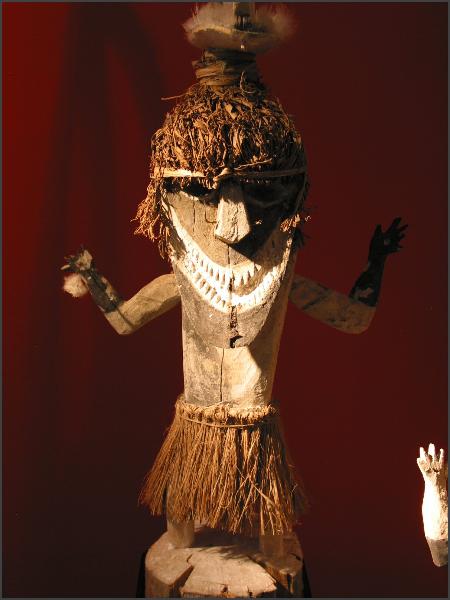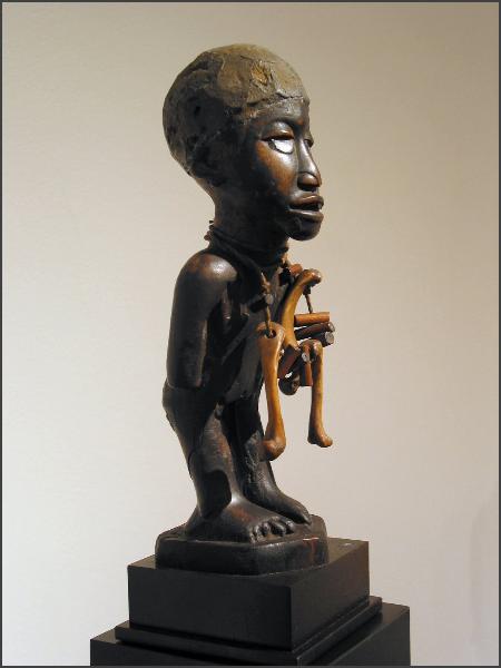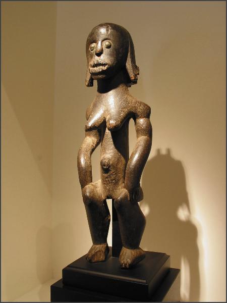 | Next was #30, Galerie Alain Lecomte (photo above was from the event catalog) "Alain Lecomte is a member of the International Organisation of Experts, Ordinex. The Gallery has been present for several years in the most important international Tribal Art Shows : New York, San Francisco, Brussels and of course, Paris. For this edition of Parcours des Mondes, there is no specific theme but rather a selection of objects exclusively from ancient collections: such as this Yoruba Habitation post representing a horse (corlay Collection), or these Yaka masks from Zaire, still with their raffia headress; this superb Dondo fetish, opposite page, is from a german collection; and a very rare Toura Mask from Walker's collection, which is a pure pleasure." This is another gallery where I didn't take a lot of photos in because I was too busy talking. Alain is a very nice guy and I really enjoy talking to him and he always has an interesting and unusual group of objects on display at the various shows he participates in. I thought I had taken a few more photos inside the gallery but I couldn't seem to locate them so I scanned the image from the catalog which is above. Alain had 4 figures like this, all similar to each other, that he got from a German collection. He said they had been collected in the early 30's and had been stored away ever since. He managed to pick up the 4 of them recently. |