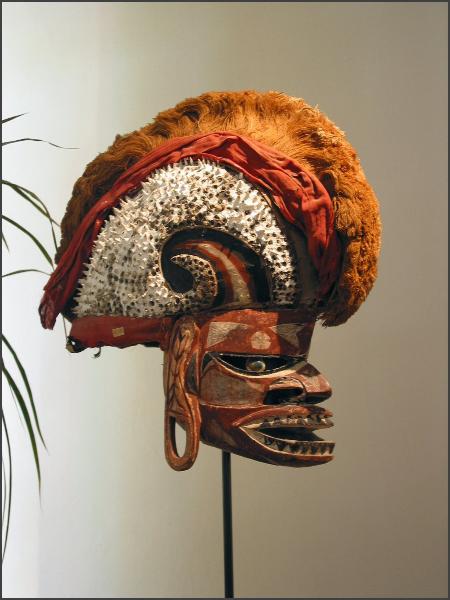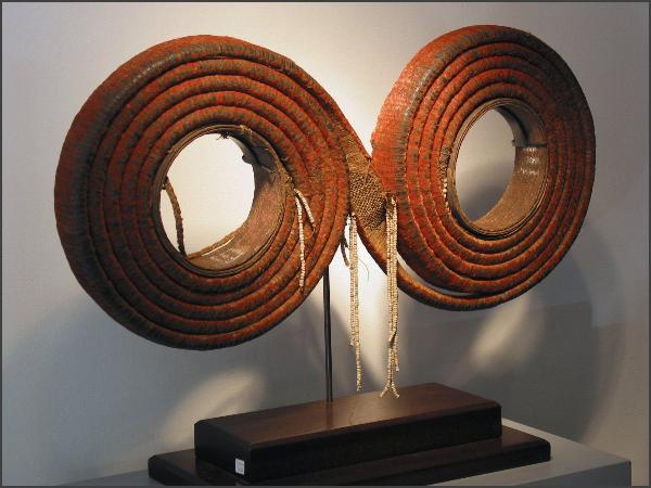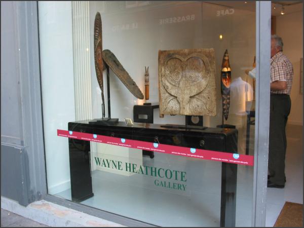 | Next was #52, Gallery J. Visser Joris Visser had a large gallery and had a wide range of objects on display. Probably the most unusual was a large Malagan mask from New Ireland that was featured in the catalog and shown directly below. There was also a very interesting mask displayed in the front window, I didn't inquire about it butit was so large and delicate I don't know how you could ever transport it! |