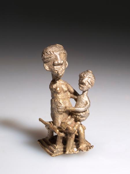 | From the collection of the American Museum of Natural History, NY GOLDWEIGHT, WOMAN,CHILD [90.2/ 8069] AFRICAN ETHNOGRAPHIC COLLECTION Culture: ASHANTI Country: GHANA Material: METAL (BRASS) Dimensions: H:5 W:2.5 [in CM] Donor: WILLIAMS Acquisition Year: 1990 |