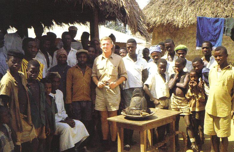 | Villagers attend the donation of their Sande Society mask to the Sierra Leone Museum, represented by Gary Schulze. Moyamba District, Sierra Leone, 1962. Dedicated to the late Kondeh Bundu of Waiama Village, Bumpe Chiefdom, Bo District and to the people of Sierra Leone, West Africa. |