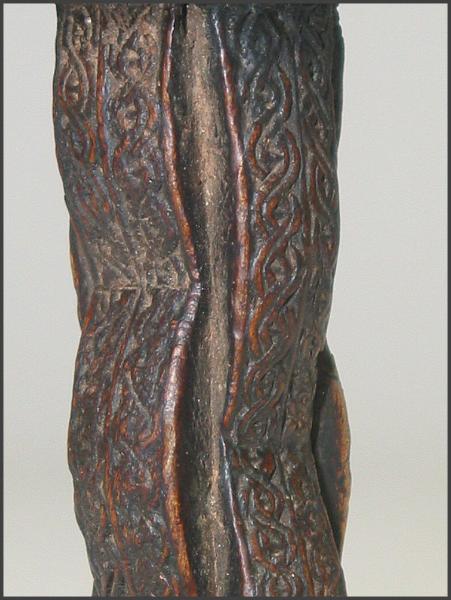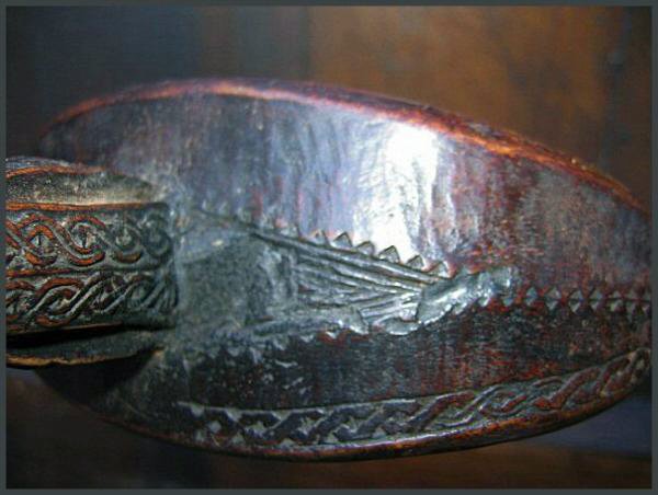 | An example of another single post Boni headrest (left and below left) and the detail on the side of a beautiful double post headrest (right and below right) These headrests are ones that Tribal Gathering London had at the San Francisco Tribal Arts show. He still has these, as well as other double post headrests available for sale. CLICK HERE to go to their website to contact them if you are interested in finding out more about the headrests they still have for sale. Tell Bryan you heard about them from me. Below are a couple of photographs of the headrests and a few other objects they had on display at the San Francisco Tribal Arts show. Most of the material they deal in is from Eastern and South Africa and they had a lot of very unique objects on display. |