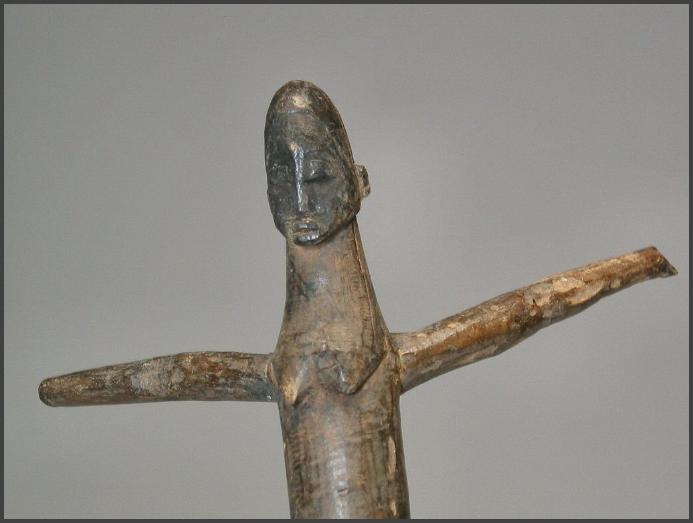 | The figures that actually sparked my interest in the Lobi Bateba Duntundara figures are actually the Dayak territory marker figures from Borneo. They also have outstretched arms, but are usually out to the side. I saw a few at the NY Tribal Arts show in May 2005 and fell in love with them and then I came across the Lobi bateba duntundara figures with the outstretched arms and fell in love with them as well. I recently found one of the Dayak Patong Pantak or territory guardian figures and added it to my collection and it is pictured below. |
