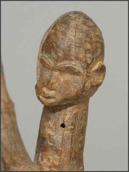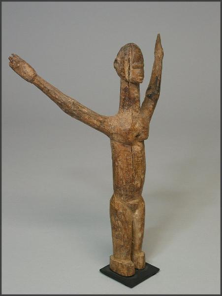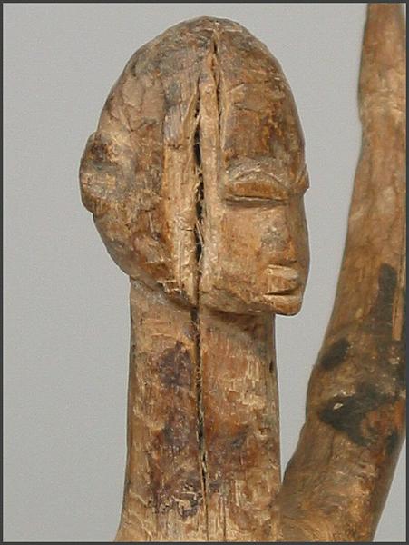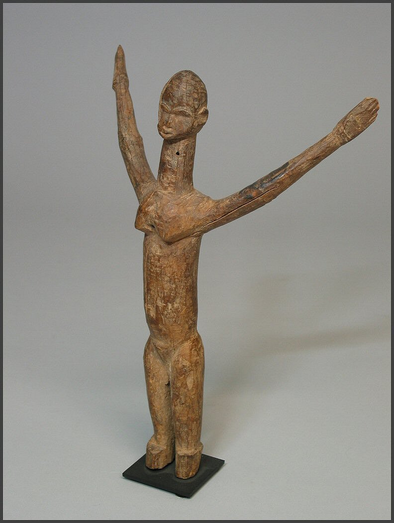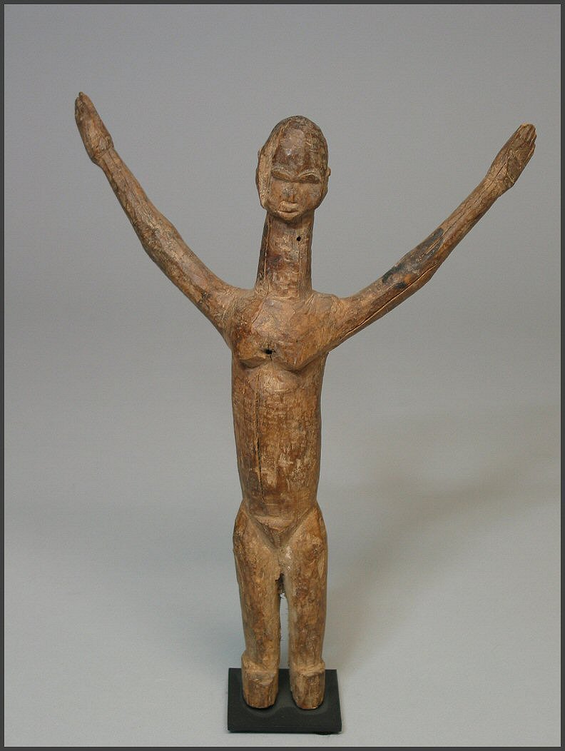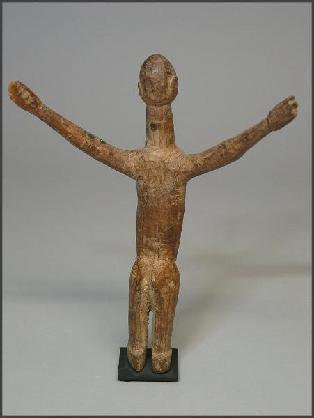 | The figures that actually sparked my interest in the Lobi Bateba Duntundara figures are actually the Dayak territory marker figures from Borneo. They also have outstretched arms, but are usually out to the side. I saw a few at the NY Tribal Arts show in May 2005 and fell in love with them and then I came across the Lobi bateba duntundara figures with the outstretched arms and fell in love with them as well. I recently found one of the Dayak Patong Pantak or territory guardian figures and added it to my collection and it is pictured below. |