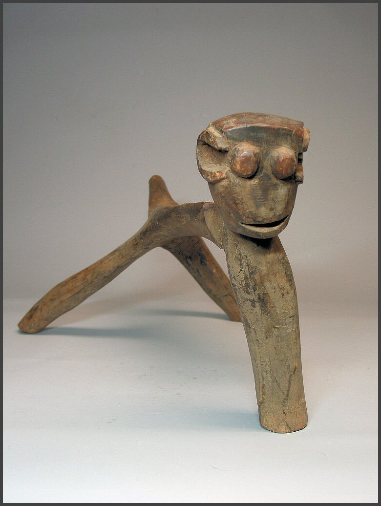 | Lobi animal stool (Siège) A GREAT Lobi stool in animal form, I LOVE the face on the stool. 29" long For images of a similar style Lobi animal stools, see illustrations in the book LOBI MAGIC from Galerie Flak, Paris |