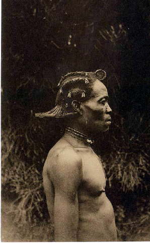 | From the book: Hair in African Art and Culture Two women with cascade coiffures, Luba Photo: Franck, first half of the 20th century (right) Luba man with cascade coiffuer |