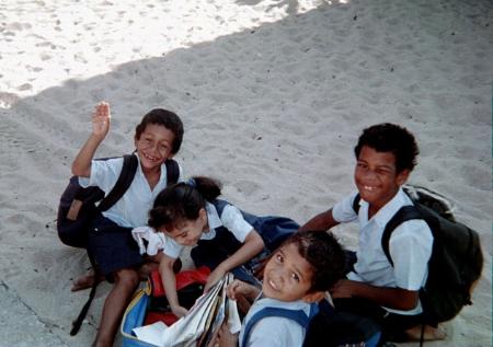 | Some of the local kids in Placencia and a market scene in Belize City on the right |