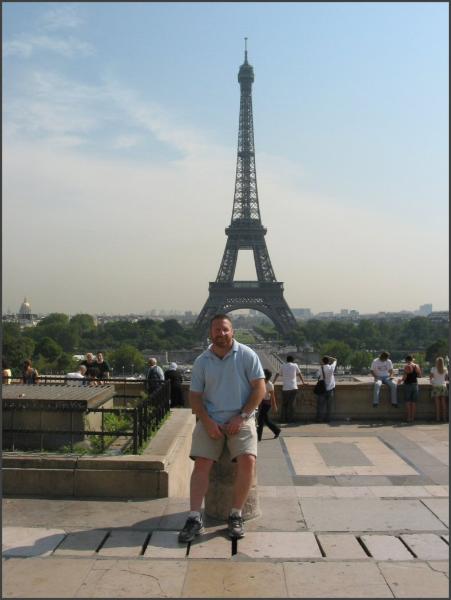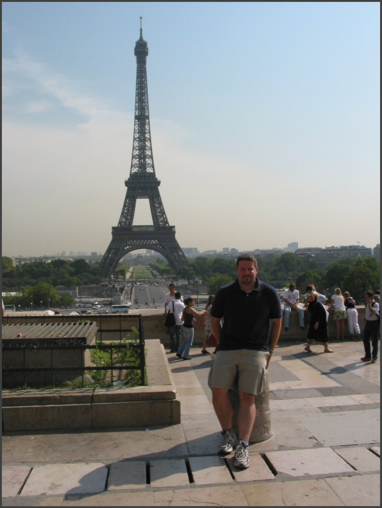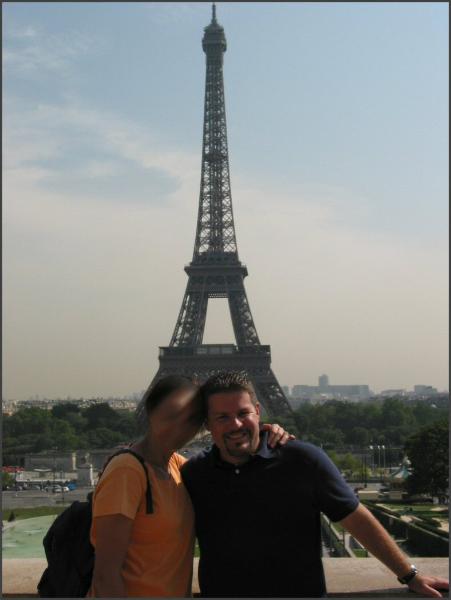 | Next stop was the Eiffel Tower, you can't go to Paris without going to the Eiffel Tower. Unfortunately, we didn't go to the top of the tower that day and we never made it back there to go to the top. From Wikipedia.com: "The tower stands 300 m (1000 ft) high, which is about 75 stories. Including the 20.75 m (70 ft) antenna, the structure is 320.75 m (1070 ft) high which is about 81 stories. At the time of its construction in 1889, the tower replaced the Washington Monument as the tallest structure in the world, a title it retained until 1930, when New York City's Chrysler Building (319 m/1063.33 ft tall) was completed (although the tower was still taller if the respective spires of the two structures were excluded). The structure was built between 1887 and 1889 as the entrance arch for the Exposition Universelle, a World's Fair marking the centennial celebration of the French Revolution. The tower was met with resistance from the public when it was built, with many calling it an eyesore (Novelist Guy de Maupassant ate at a restaurant at the tower regularly, because it was the one place in Paris he was sure he wouldn't see it). Today, it is widely considered to be one of the most striking pieces of structural art in the world. Originally, Eiffel had a permit for the tower to stand for 20 years (when ownership of it would revert to the City of Paris, who had originally planned to tear it down; part of the original contest rules for designing a tower was that it could be easily torn down), more than recouping his expenses, but as it later proved valuable for communication purposes, it was allowed to remain after the expiry of the permit." |