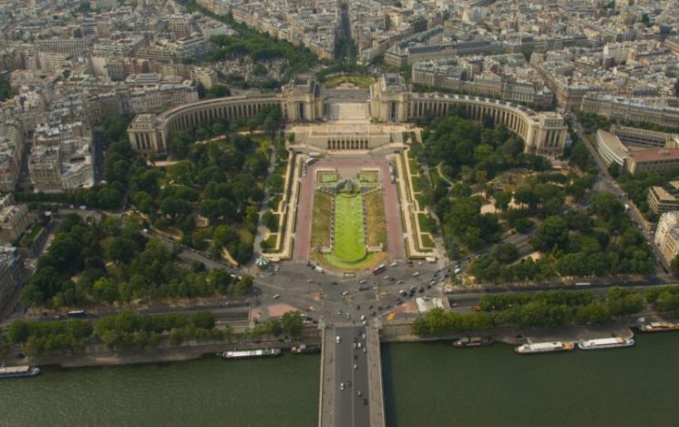 | A view of the Trocadéro, site of the Palais de Chaillot, from the Eiffel Tower IMAGE SOURCE (WIKIPEDIA) |