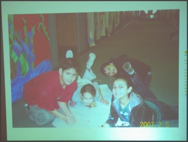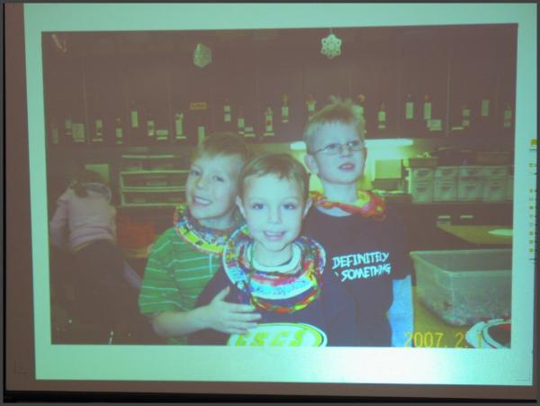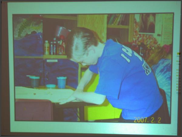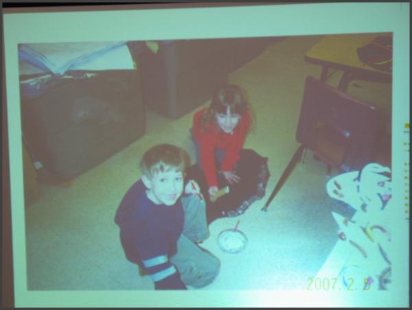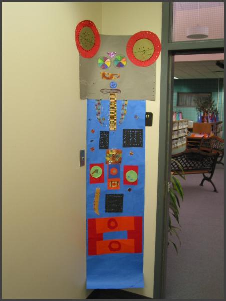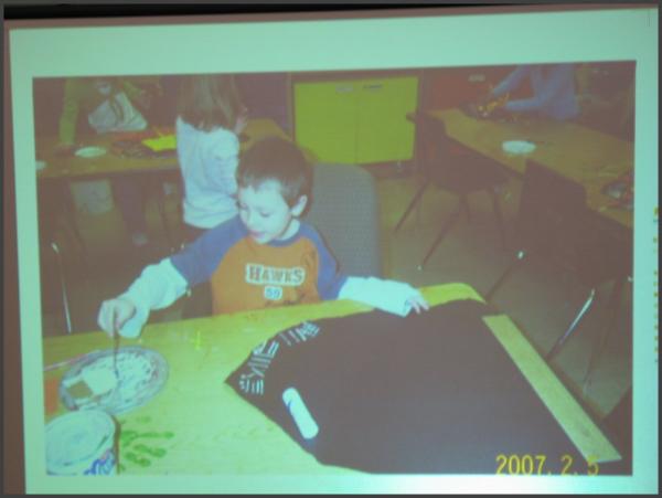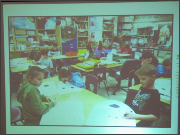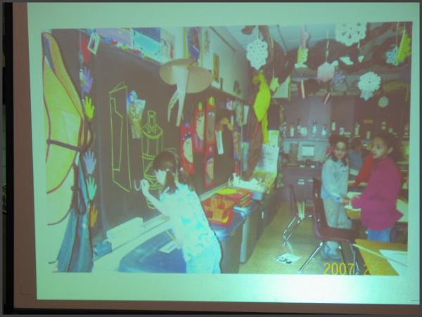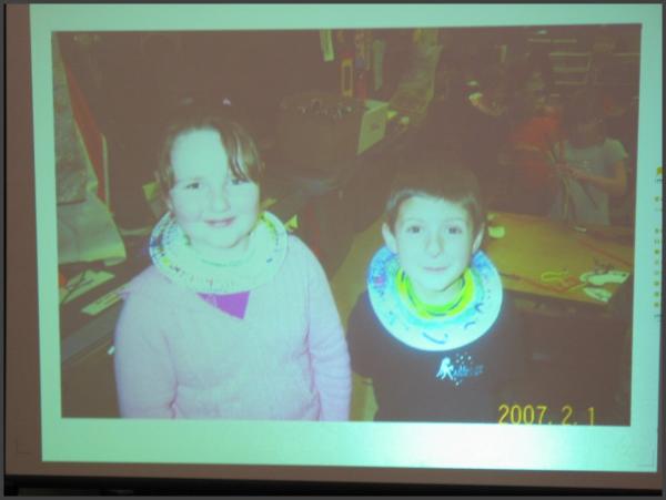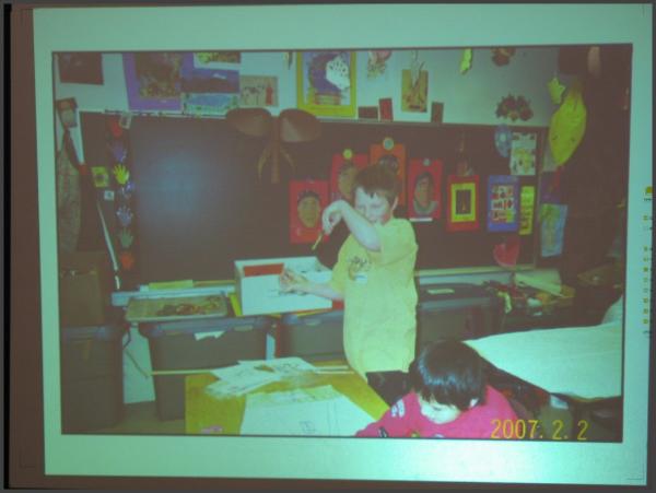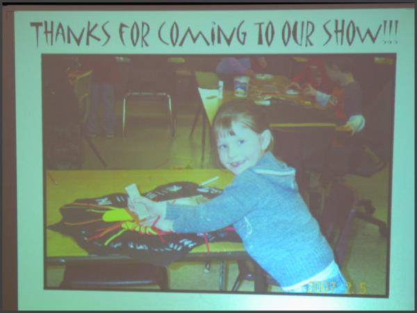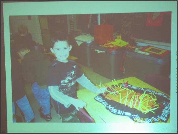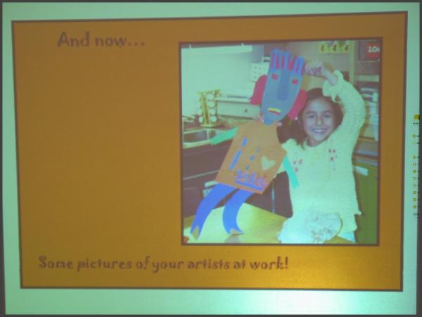 | The photos of the kids making their artwork were taken from a presentation that Anne McClellan did that was running in the library of the school during the art show. I managed to snap a few photos from the presentation because I thought it was great to see the kids making their creations! |