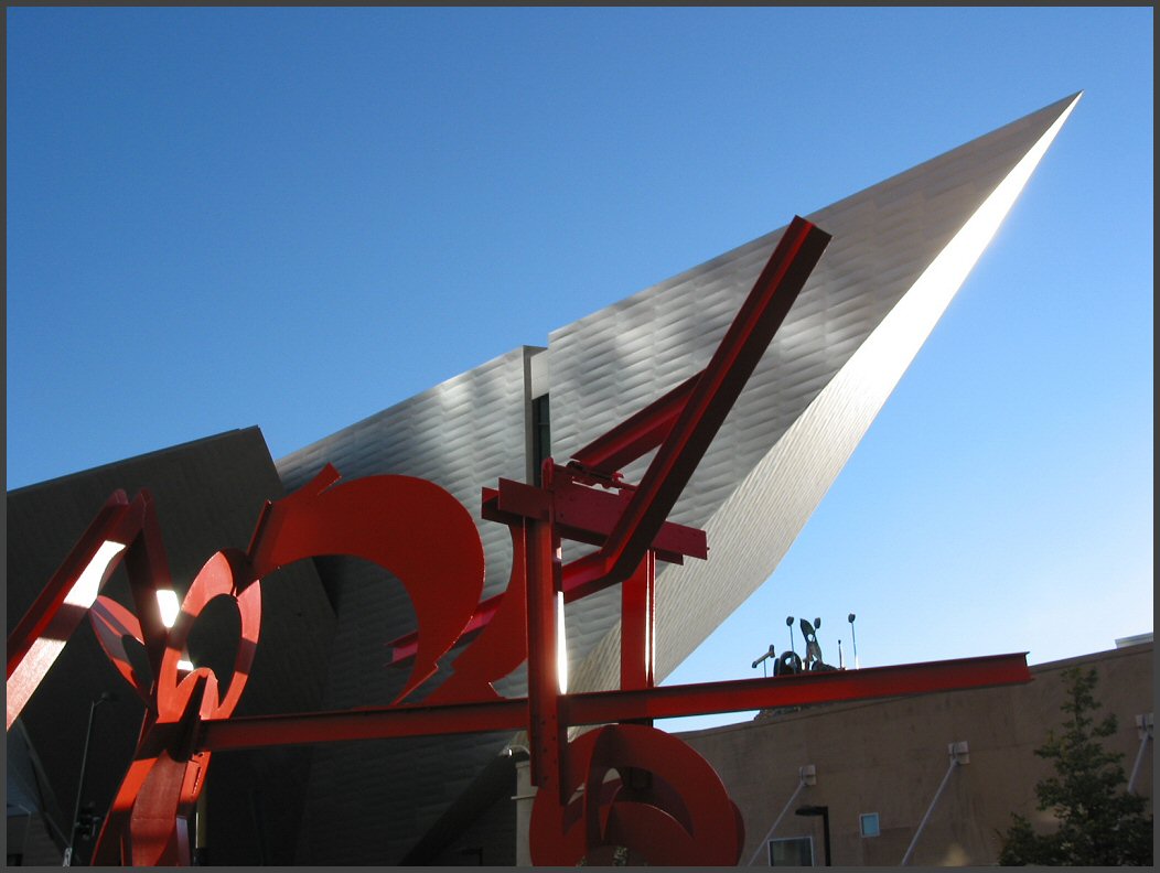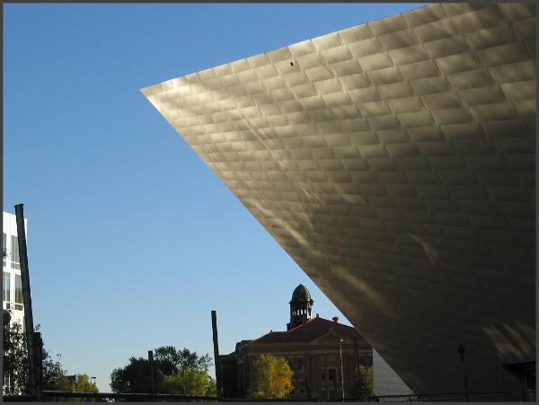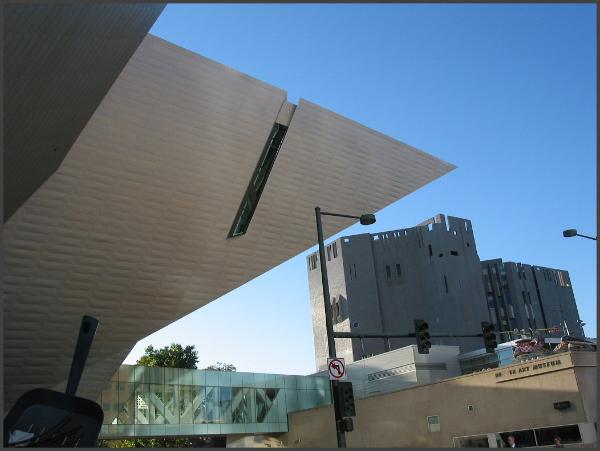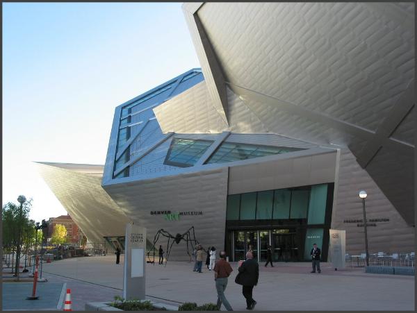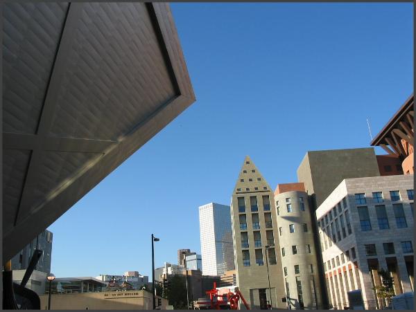 | A view of the Denver Library taken from the DAM Hamilton Building. The area around the DAM is very architecturally unique and diverse. |