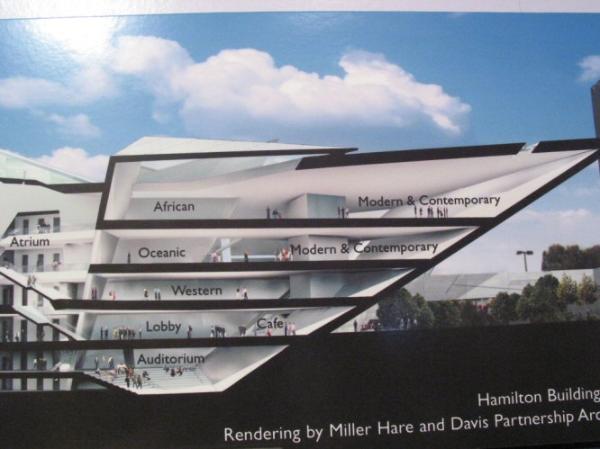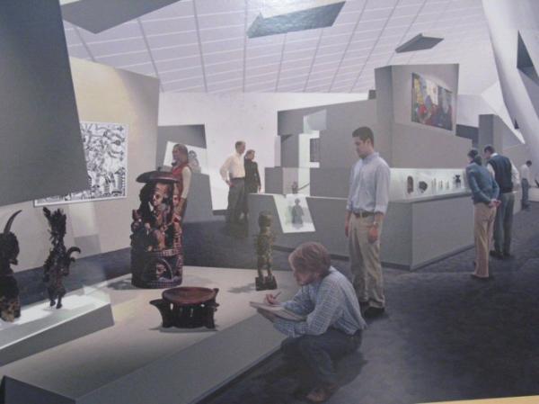 | Above and below are photos of the model that was set up showing the new African art gallery that will be in the new building. Traditional and contemporary African art will be displayed side by side in the gallery, which I think will be great. |