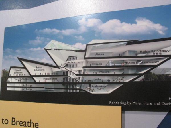 | An early conceptual image of the African art gallery. Rendering by David Partnership Architects. |