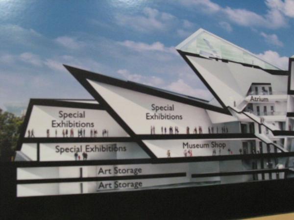 | A rendering showing the location of some of the galleries in the south side of the new building |