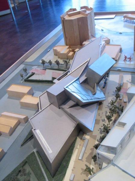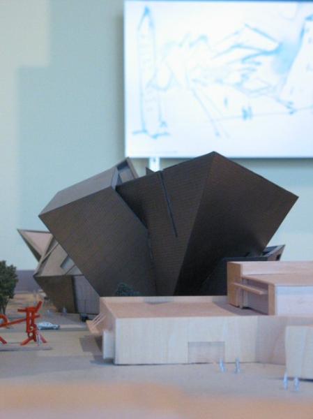 | Below are a few more photos of the model of the new building. In the photo below, the new building is in the front and the existing building for the Denver Art Museum is shown in the back. |