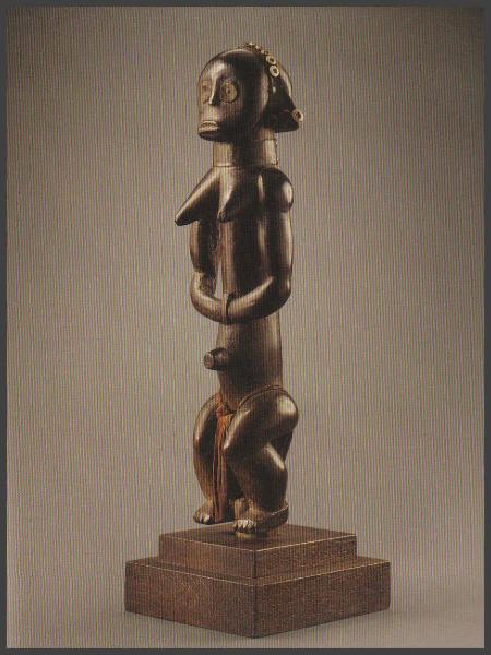 | Next was #21 Entwistle Gallery from London and Paris "Roberta and Lance Entwistle have been dealing for over thirty years in the finest works of tribal art from Africa, Oceania and the Americas. Their clients include many of the most prestigious private collections in Europe and North America as well as many major institutions with an interest in this field. In 2005 they opened new galleries in the rue des Beaux Arts in Paris and New Bond Street in London." My favorite thing in this gallery was a Sapo headrest that I didn't get a photo of. It was a great headrest with a price tag to match - 57,000 euros. The Fang figure directly below was interesting and so was the one further down from the event catalog. The one from the event catalog wasn't in the gallery, I was told that it was in the la Biennale des Antiquaires at the Grand Palais. |