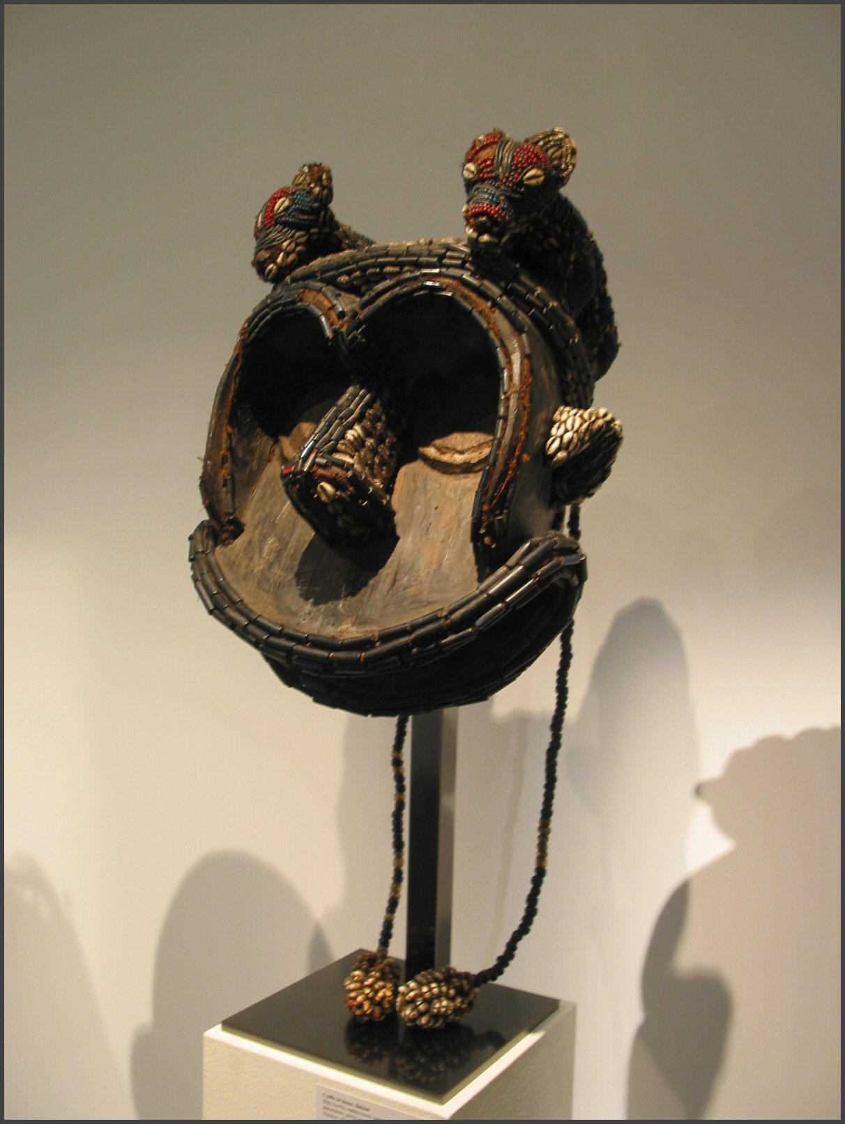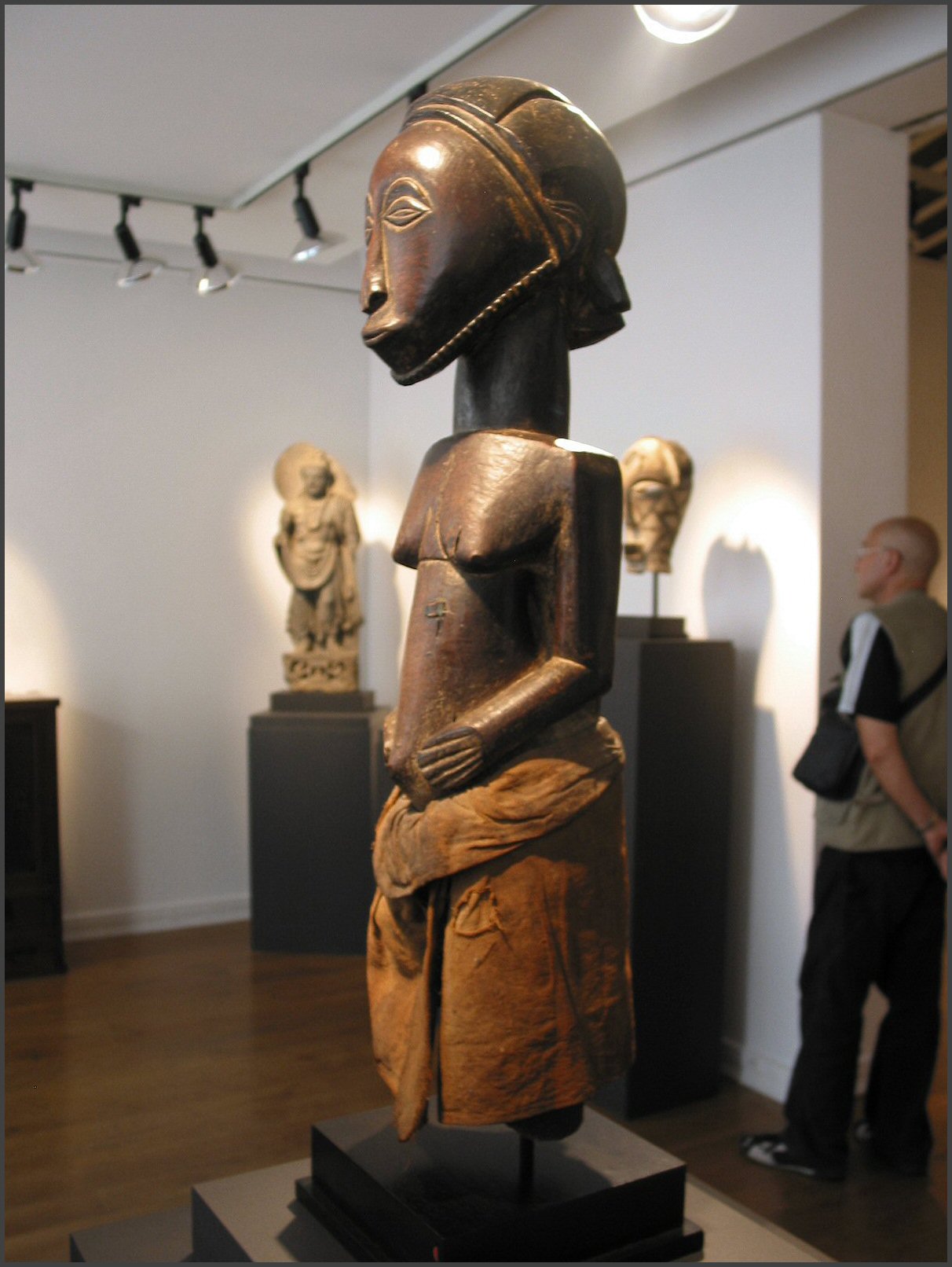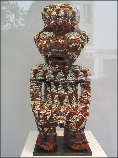 | Next door to Pace was #19, Galerie Bernard Dulon "The upcoming show, opening mid-June at the Galerie Bernard Dulon in Paris and October at the Gallery Friedman & Vallois in New York, will showcase the remarkable diversity of the traditional arts of Cameroon. While the arts from the Western kingdoms take the lion's share, including, among others, major Bangwa and Bamileke sculptures and an amazing collection of beaded royal items, the Fang populations from the southern part of the country will occupy a place of choice with their famed reliquary figures or enema byeri, along with the Gbadja, from the South-East, the Bafo, the Doualas and the peoples living on the borders with Nigeria. Each piece was lovingly selected by Bernard Dulon; the gallery will publish a catalogue written by Bettina von Lintig, directed by Alain Weill with photographs by Hugues Dubois to commemorate the occasion." The Cameroon exhibition was full of interesting objects. Directly below is the Fang byeri figure featured in the catalog, it wasn't present in the exhibition and I would assume that it had already been sold. It has a wonderful face. |