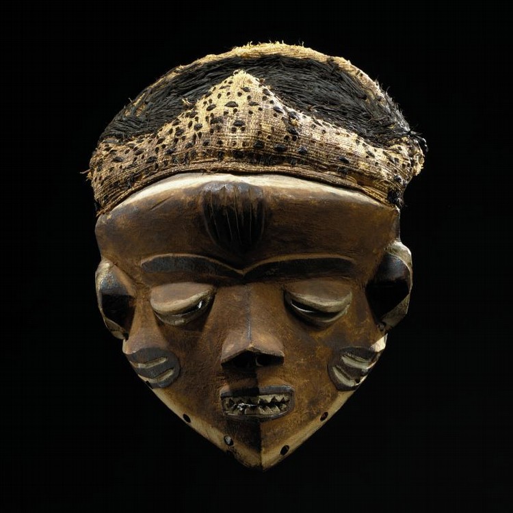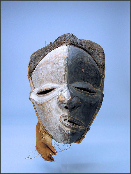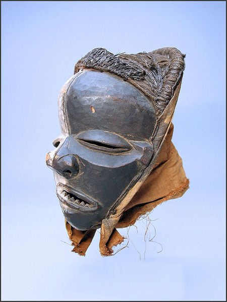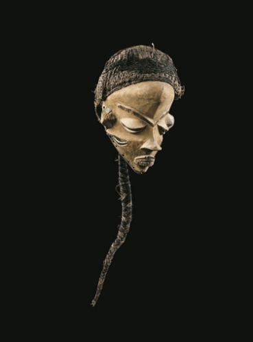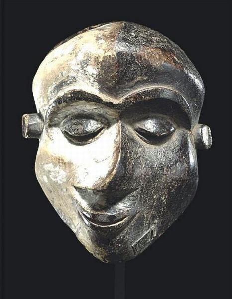 | Pendu mbangu mask Wood, pigment 9" tall x 7" wide This mask is also in the Geller Collection |