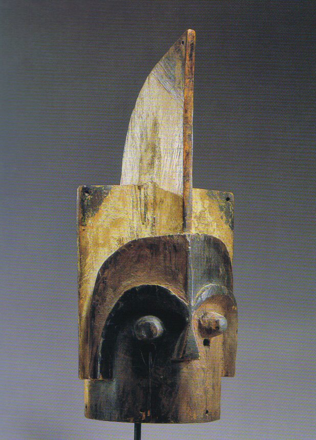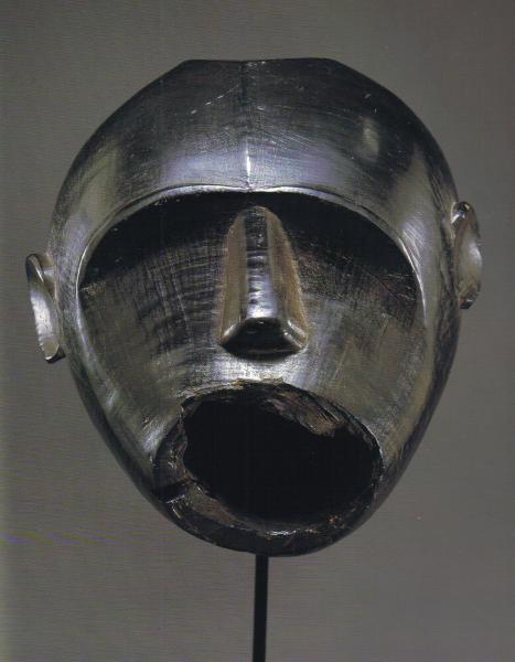 | Property from the Collection of Joseph and Doris Gerofsky 309 A rare Bakota helmet mask (Mbuto) emboli, of immense hollowed cylindrical form, and pierced around the lower rim for the attachment of fiber, with a raised triangular nose leading into a single dramatic undulating brow forming the conical protruding eyes above pierced vis ion holes, the angular head with large flange emanating from the crown, and intersected by a transverse squared flange above, a hole at each corner for attachments, fine geometric incisions under the eyeholes; exceptionally fine layered red ochre and black pigments on the face and kaolin on the flange. height 27in. (68.6cm.) Provenance: Acquired from Raymond Kerr, New York Bakota helmet masks are exceptionally rare. See Leuzinger (1971:number R14) for another of extremely similar form and structure, possibly by the same hand. See also Sotheby's London, December 7, 1971, lot 191 for a related mask with a nearly identical treatment to the nose and brow, but exhibiting a slightly different treatment to the coloration. Leon Siroto wrote the following comments about this mask, This mask very well exemplifies the style followed by the BaKota (in the strict sense) of the region of Makokou in northeast Gabon. As an example of its type, this mask is quintessential both in form and decoration. A slightly more detailed version of this mask, possible by the same hand, can be seen in E. Leuzinger, Afrikanische Kunstzverke, Essen 1971, no. R14.' Estimate $25,000-35,000 Didn't sell |