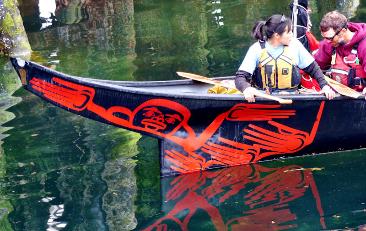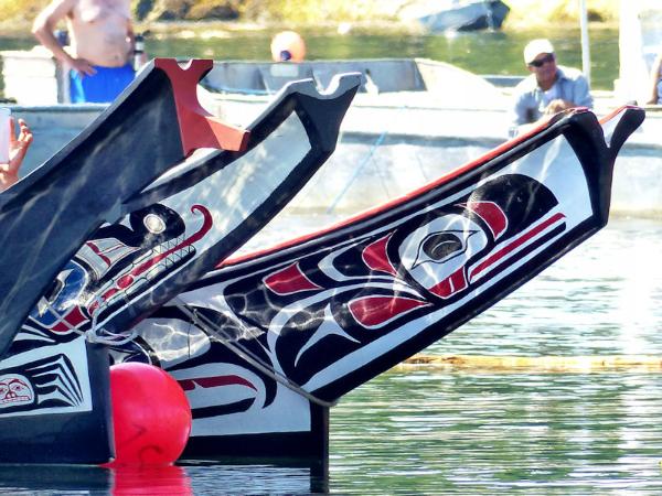 The canoe called "Many Hands" designed by artist Roy Henry Vickers