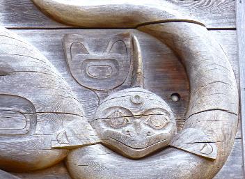 (Right) This is a photo from one of the Haida canoes. The person standing in