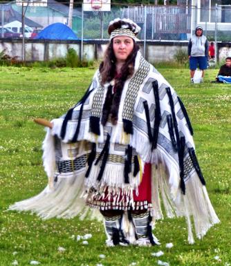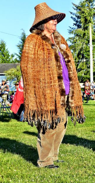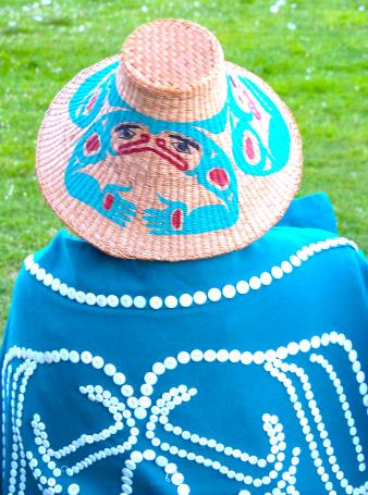 On my trip to Bella Bella BC to see Tribal Canoe Journeys one of the most visually interesting things to me, besides the paddles, were the "button blankets" various people were wearing. There was a wide diversity of styles with different crests on the back and I found them all incredibly interesting. I'd seen an example in the Denver Art Museum but I'd never really been exposed to them other than in that setting and I didn't know anything about them.