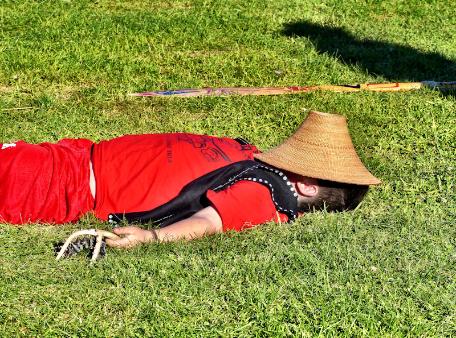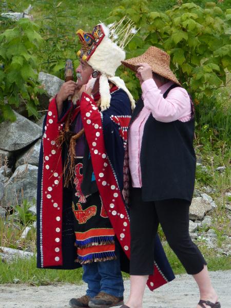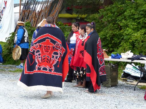 After the protocol was over, the canoes were docked and all of the paddlers came ashore and made a procession to the field where everyone gathered for the protocol of dance and song that was presented by each tribe that was present. The photos below were mainly of the Haida people.