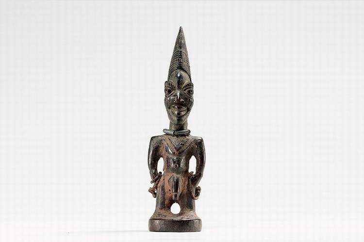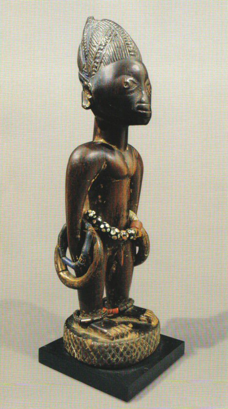 | Ibeji figure (female) Igbuke, Oyo region, Nigeria H. 11 1/4" Collection of George Chemeche, NY From the book -Ibeji - The Cult of Yoruba Twins |
