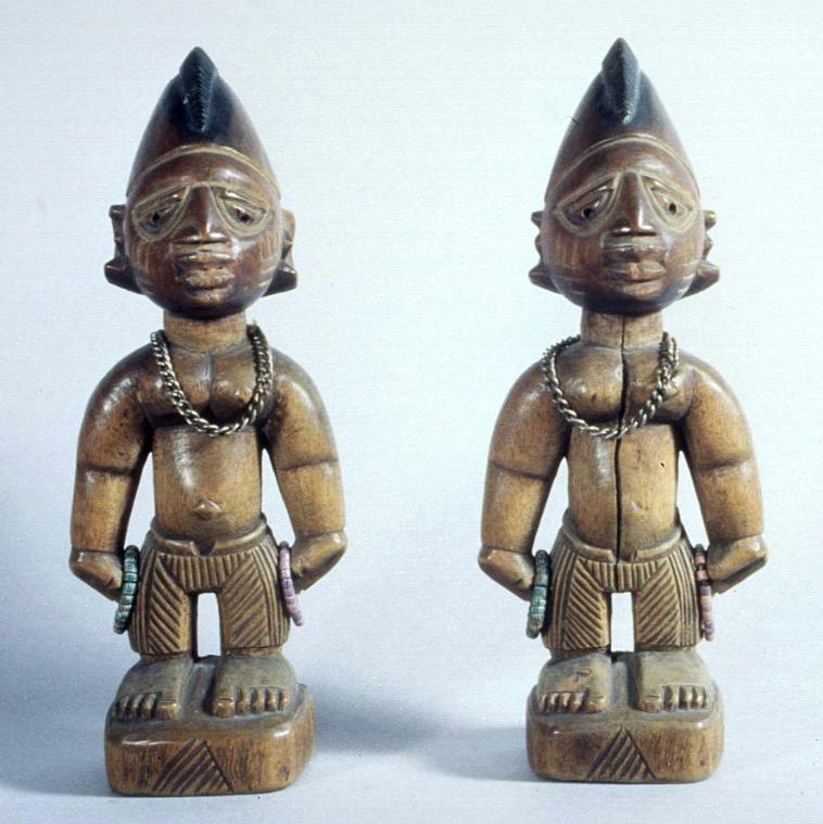 | Twin figures, ibeji, by the Master of the Owu Shango Shrine. Yoruba, Nigeria. Wood, beads; 28.5cm (11.3"). 1997.3.1, 1997.3.2. Denver Art Museum, Denver Colorado |
