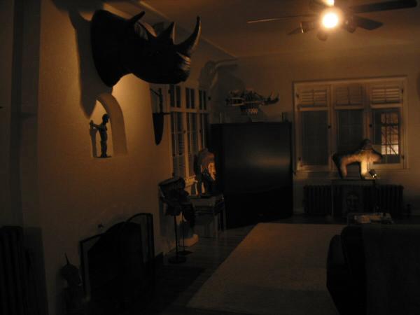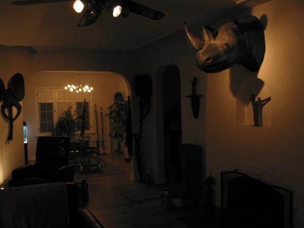 | House photos Please note -The rhinoceros head in my living room in a fiberglass reproduction and not an actual rhino head. |